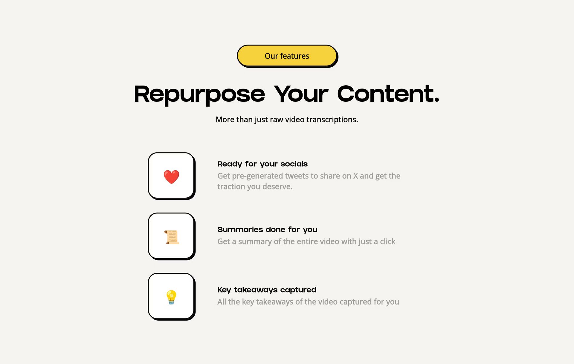 Podstellar transforms YouTube videos into rich content in minutes. Upload a video URL, and instantly get a full transcript, SEO-friendly blog post, key takeaways, and tweet-ready snippets ideal for creators who want to multiply their impact.